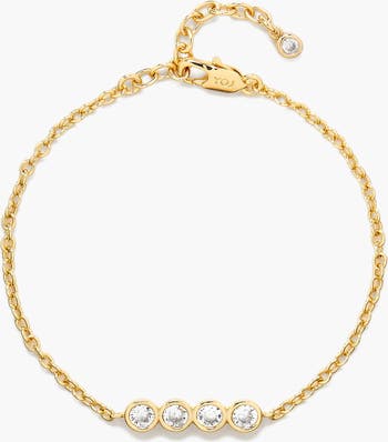 Introducing our Stan Celestial Crystal Bracelet, an essential piece from our new Celestial Collection, designed for everyday elegance. Featuring a fine, minimal chain with a row of sparkling crystals set at the center, this bracelet offers just the right amount of shimmer to complement any outfit. Its lightweight and versatile design makes it a perfect go-to accessory, whether worn solo or layered with other pieces. With its subtle celestial sparkle, this bracelet effortlessly enhances your daily look, adding a touch of refined sophistication to your collection.