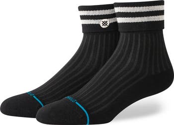 Targeted cushioning puts comfort under every step in quarter-high crew socks knit with rolled cuffs and sporty stripes.