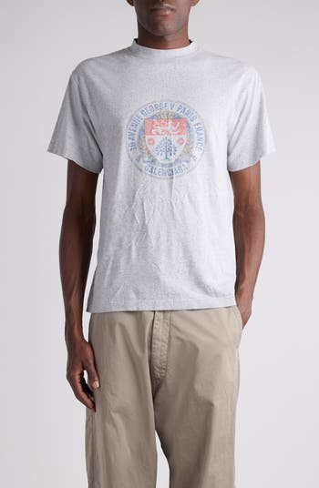 A faded crest logo brings Balenciaga's unmistakable energy to a crewneck T-shirt cut from comfy cotton in a heather grey hue.