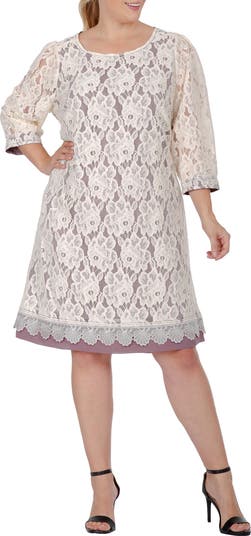 This midi dress has allover floral lace, a vintage-inspired bit of texture and contrast detailing that gives the look a retro flair.