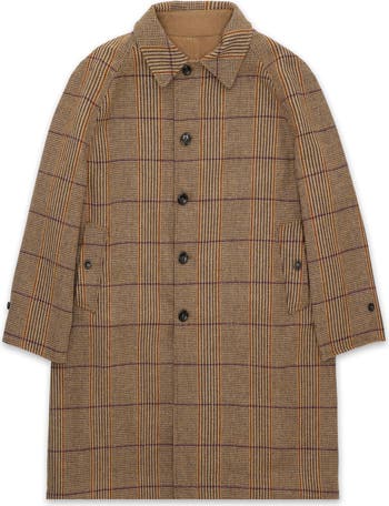 - Reversible coat - with one side in check wool and the other in beige gabardine