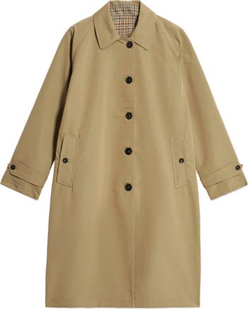 - Reversible with one side in Herringbone wool and the other in beige gabardine
