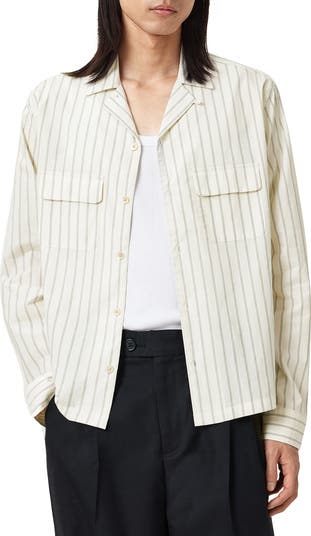 Crisp stripes balance the relaxed fit of this versatile cotton-blend button-up that easily blurs the line between casual and more styled up.