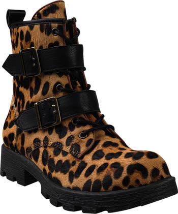 Buckle straps and a lug sole dial up the moto vibes of a lace-up bootie complete with a convenient side zipper.