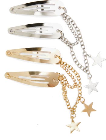 Bring celestial shine to your ensemble with this assorted pack of high-shine metal hair clips suspended from star-tipped chain-link charms.