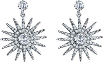 Star Dangle Earrings with White Diamond Cubic Zirconia