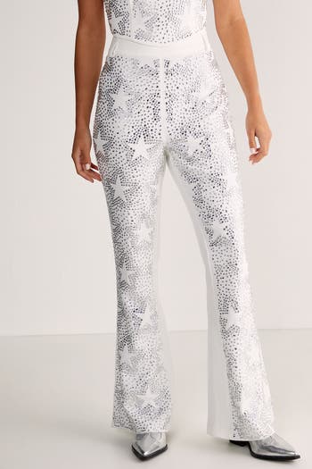 Make a stellar impression with these show-stopping flared trousers from Nasty Gal. The eye-catching star diamante pattern creates a mesmerising effect that catches the light with every movement, perfect for commanding attention on the dance floor. The tailored high-waist cut cinches your silhouette whilst the dramatic flare adds a touch of 70s-inspired glamour.