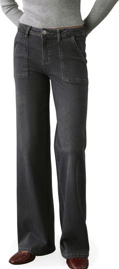Stellar embroidery lights up the back pockets of these low-stretch jeans featuring full-length straight legs in a relaxed fit.