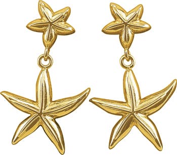 Bring a little seaside magic to your look with statement-making starfish earrings gleaming in 14-karat gold plate.
