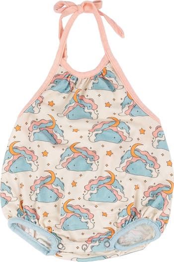 Baby will stay cool and look cute on hot days in this halter bubble romper fitted with snaps between the legs for easy changes.