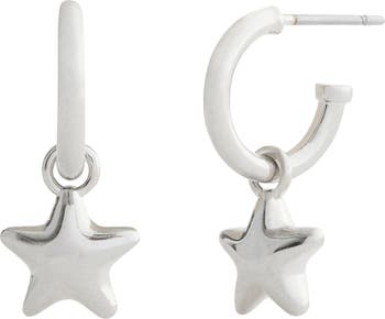 A puffy star brings stellar shine and dangly movement to polished hoop earrings.