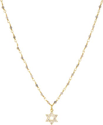 A pavé Star of David pendant necklace adorned with semiprecious-stone stations serves as a daily reminder of your faith.