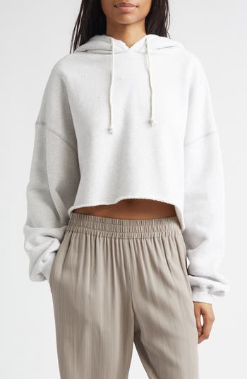 This soft cotton hoodie has a casual versatility inspired by the '70s with its oversized, cropped fit accentuated by a raw hem and iconic micro-abrasions for a lived-in effect. Tiny crystals sparkle throughout the timeless style.