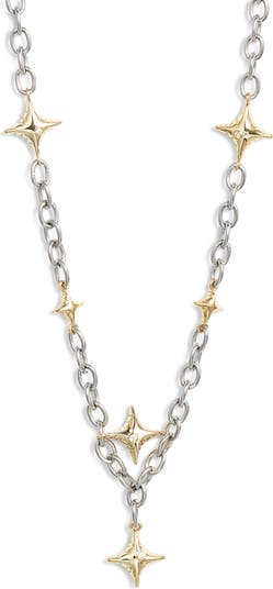 Star stations plated in 18-karat gold and accented with cubic zirconia bring celestial shine to this sterling silver–plated necklace.