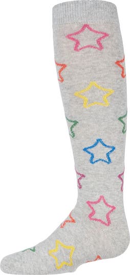 Only the best for your favorite girl, so have her try on a pair of our Star Shine Knee Highs! These solid socks are finished with a soft, flat knit, and colorfully stitched metallic star accents that'll have her shining bright. Crafted from a soft and smooth cotton blend, with flexibility and generous stretch so her socks move with her. Added spandex for an ideal fit that offers superior shape retention and less pilling.