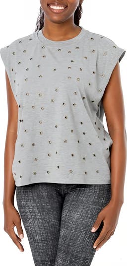 An oversized fit adds a comfy feel to this jersey muscle T-shirt covered in shimmering studded stars at the front.