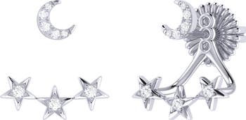 Our Star Trio Crescent Silver Diamond Stud Earring offers a trio of celestial beauty to your ears. Expertly handcrafted with timeless beauty and grace.