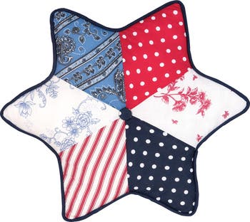 - At 18 inches, this star-shaped patchwork pillow makes a striking patriotic statement on a sofa, accent chair, or bed, with its distinctive star form and multi-fabric patchwork design providing bold visual interest across any home setting.