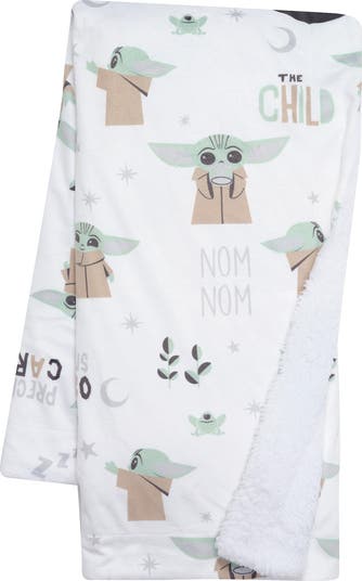 Cuddle up your little padawan (Jedi-in-training) in this soft and cozy minky front with fleece faux shearling back baby blanket. It is on a soft white ground with Grogu aka Baby Yoda or the Child featured in his pod, reaching for a star and other cute poses. Sized at 30” X 40” making it a great stroller blanket. It is ideal for trips to the park, running errands, and is great for moms, dads, and babies on the go. It makes an amazing baby shower gift or welcome home baby gift. Machine washable for easy care.