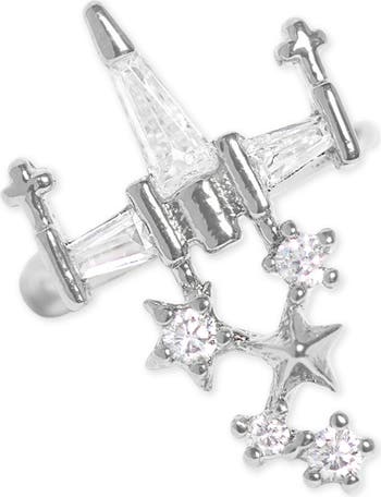 Send your look into hyperspace with this wraparound ear cuff, where sparkling cubic zirconia cast a galactic glow across the legendary starfighter that helped take down the Death Star.