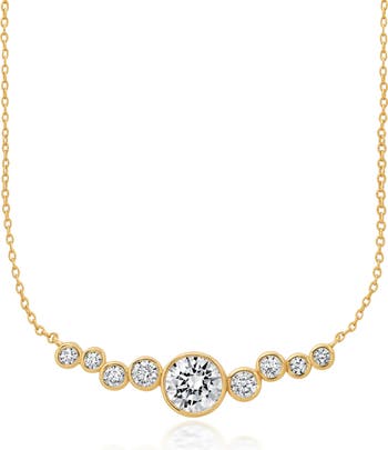 A staggered stream of hand-set cubic zirconia bezels beams light from the front of this celestial-inspired necklace.