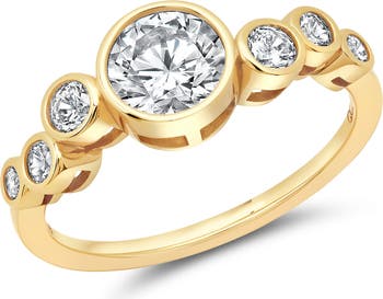 A staggered stream of hand-set cubic zirconia bezels beams light from the front of this celestial-inspired ring.