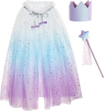 Fit for a princess! Sweet Wink dress up kits include everything a little one needs for the ultimate dress up ensemble. The Stardust Dress-Up Kit is a dazzling three-piece set made for little stars who love to shine. With starry glittering details and celestial charm, this kit brings just the right amount of magic to every twirl, wish, and adventure. Capes are made with super soft tulle (that doesn’t scratch or itch!) and paired with a matching wand and glitter crown. This 3-piece set comes packaged on a white hanger card making it super easy to gift!