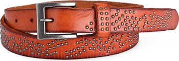 A leather belt inspired by starry skies with stud detailing and a vintage style buckle. Designed for those who appreciate subtle detail.