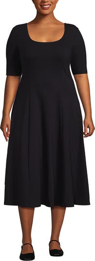 Plus Size Starfish Elbow Sleeve Midi Fit and Flare Dress