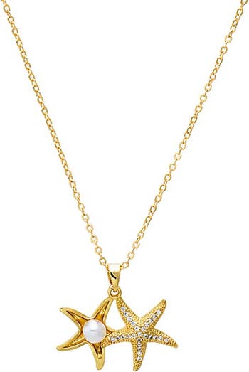 Brighten your day-to-night look with the Starfish & Pearl Pendant Necklace by Adina Eden, a playful Necklace for all occasions. Featuring sleek geometry and radiant tones, this gold pendant necklace for women comes in White for a personalized finish. When your plans go from casual to chic, this detail adds the right touch of style to any outfit without weighing down your vibe. Complement this gold plated pendant necklace with pieces from our Lariat Necklaces collection to make your everyday styling effortless. It supports your personal style without ever overpowering it.