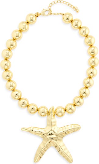 Unleash your inner mermaid with this metallic beaded necklace suspending a molten starfish pendant for mesmerizing shine.