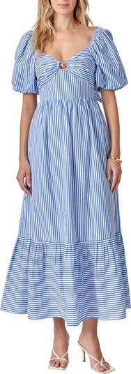 Starfish Stripe Puff Sleeve Maxi Dress