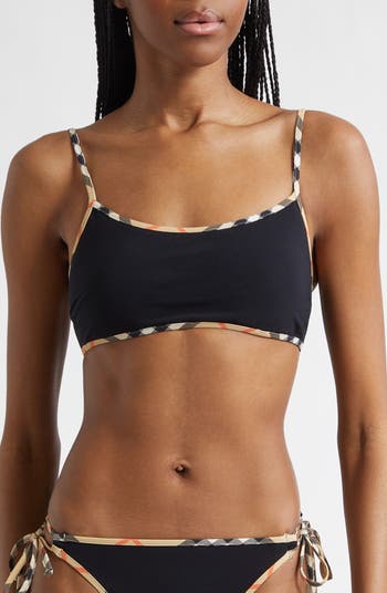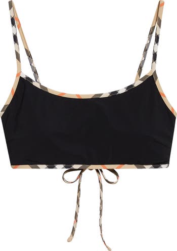 Show love for Burberry while at the beach or pool with this scoop-neck bikini top trimmed with House Check in the label's signature sand colorway.