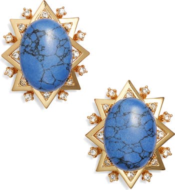 An earthy resin center brings organic allure to these stud earrings plated in 14-karat gold and adorned with faceted crystals, making them worthy of wearing both day and night.