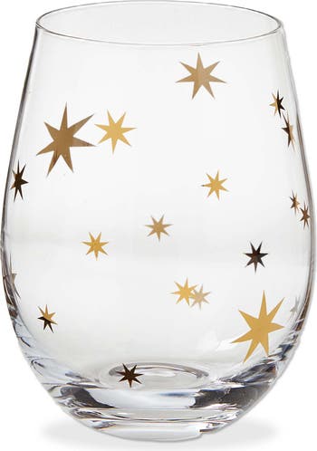 • Celebrate the season with the Starlight Gold Stemless Wine Glass featuring a stunning gold star design perfect for Christmas gatherings and gift giving this elegant 18oz glass adds a touch of glamour to your holiday drinkware collection its comfortable stemless shape makes it easy to enjoy your favorite wines while the hand wash only care ensures its luxurious finish lasts for years to come.