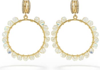 Glam up any look with the striking sparkle of these hoop earrings adorned with pavé and rock-cut crystals that catch the light from every angle.