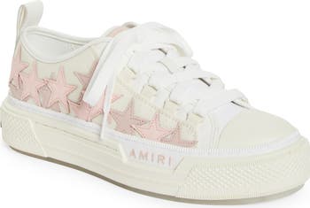 Layered pink stars spangle the sidewalls of a court-inspired sneaker crafted from canvas and leather with a bumper cupsole and chunky tread.