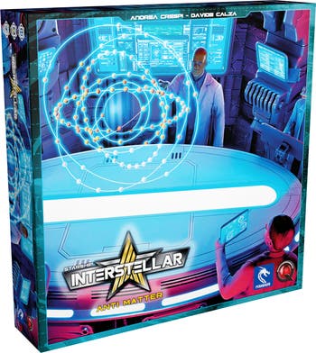 STARSHIP INTERSTELLAR: ANTI MATTER EXPANSION - Moscovium, or element 115, has a fascinating and controversial history. In this expansion, scientists have discovered how to use Moscovium to generate anti-matter. But as often happens with great scientific discoveries, if huge advances are promised on one hand, on the other hand their misuse can cause terrible consequences... and now the stability of our solar system is in danger. In Starship Intersteller each player takes the role of a powerful corporation, and all of them are “cooperating” to save humanity from the disaster they themselves caused: they have to build the Starship Interstellar, hibernate in it the more people they can, and find a route to an inhabitable planet. Expand your Starship Interstellar experience! This Anti Matter Expansion includes: 40 acrylic cubes, 40 plastic minis, 1 dice, 1 board, 4 tokens, 1 rulebook.