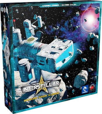 STARSHIP INTERSTELLAR: DANGER FROM KUIPER EXPANSION - During the game the players will be able to capture asteroids thanks to their launch bases, located on the asteroid belt. The asteroid thus acquired will create a personalised effect track, which will give each player unique bonuses. However, the asteroids could also crash into planets in the solar system, modifying the status of the deposits in the planetary zones or even the resources that can be extracted from the sun. In Starship Intersteller each player takes the role of a powerful corporation, and all of them are “cooperating” to save humanity from the disaster they themselves caused: they have to build the Starship Interstellar, hibernate in it the more people they can, and find a route to an inhabitable planet. Expand your Starship Interstellar experience! This Danger From Kuiper Expansion includes: 60 tokens, 4 sheets, 1 rulebook.
