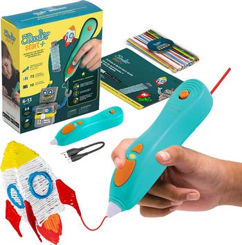 Your kiddo can doodle in the air with the award-winning original 3D printing pen. The 3Doodler Start+ 3D Printing Pen Essentials Set combines creativity and technology in a fun and engaging way. Kids ages 6–13 can bring their ideas to life in 3D while developing creativity, planning and spatial thinking skills. The Start+ Essentials Pen Set is designed with no external hot parts, making it safe and easy for young creators to use. With the press of a button, filament extrudes and hardens quickly, allowing kids to start building and drawing in 3D right away.