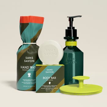 Transform your daily wash into a luxurious experience with the Sans Savon Starter Set, soap-free products designed to clean and nourish your skin without stripping your protective barrier and the oils required for healthy skin. Perfect for sensitive or dry skin, this lather-free innovation leaves skin clean, nourished, balanced, and hydrated. Gentle on skin, tough on dirt: cleans deeply without harsh soaps or detergents that strip away natural oils. Removes 99. 9% of dangerous germs: naturally derived antimicrobials remove 99. 9% microorganisms that cause body odor and dangerous bacteria like e coli and salmonella. Microbiome-friendly: protects your skin's natural ecosystem with prebiotics to support healthy, glowing skin. Nature-inspired: infused with the Charlevoix Boreal Blend, sustainably sourced essential oils of balsam fir, white and black spruce, with unique secondary notes in each of the 3 products. Leaves skin super soft: sustainably sourced ingredients rich in fatty-acids, which nourish and moisturize the skin.