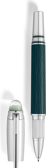 Inspired by the beauty of the Northern Lights, this fineliner pen features a sleek design with a precious resin barrel and platinum-coated fittings. The dome on the cap top is made of transparent resin and glows in low light, recalling the enchanting, dancing auroras of the night sky. The wave pattern on the dark-green precious resin of the cap and barrel admirably captures the spectral sheen of the lights, and the matte finish accentuates the seemly reflections.
