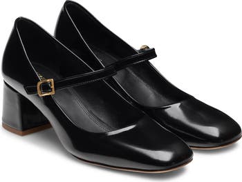 A slim mary jane strap adds an extra touch of personality to a square-toe pump set on a just-right block heel.