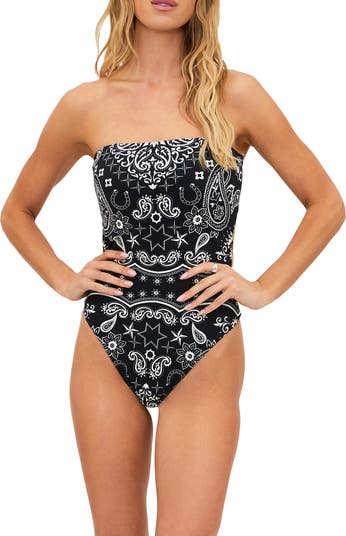 This one-piece swimsuit gets a modern update with a badana print and a flirty back cutout.