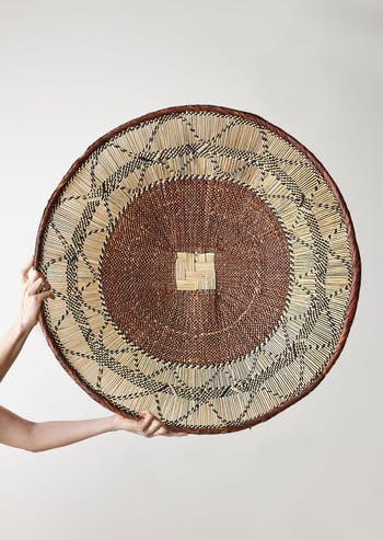 A beautiful evolution of the traditional Binga Basket, the Binga Lace features a new semi-transparent lace weave for a delicate and unique aesthetic. Handwoven by skilled artisans in Zimbabwe, these baskets are crafted from 100% natural and sustainably harvested raw Ilala Palm. This is the first collection of its kind available in the United States, celebrating Zimbabwe’s renowned heritage crafts. Originally used as winnowing baskets, they are now admired as stunning wall art pieces, adding a touch of organic beauty to contemporary homes. The natural beauty of our pieces lies in the unique color variations of Ilala palm grass fiber. Harvested from the same plant, these fibers reflect the conditions of their environment, resulting in subtle differences in tone. Depending on the season—whether wetter or drier—the dried fibers may showcase hues ranging from soft greens to warm yellows or deep browns. This organic variation adds character to every piece, making each one truly one of a kind. While we strive for consistency within batches, these natural tones are a testament to the authentic, handcrafted process and cannot be precisely controlled.