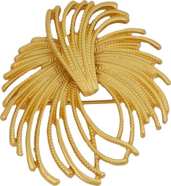 Layered petals create bold dimension on this statement flower brooch plated in 14-karat gold plate.