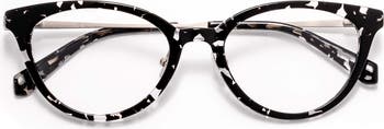 A mixed-media design and angular cat-eye profile define everyday sunglasses fitted with polarized CR-39 lenses for glare reduction and superior clarity. Adjustable nose pads offer customized wear.