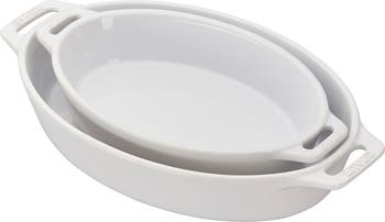 Made from vitreous glass porcelain with a durable enamel finish, these oval bakers transition beautifully from oven to table making cooking and serving easy.