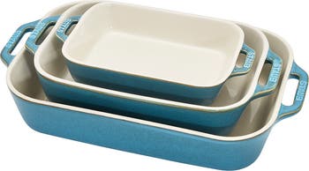 Staub 3-Piece Ceramic Rectangular Baking Dishes, Alternate, color, Rustic Turquoise