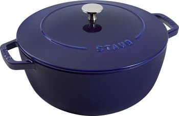 This cocotte is crafted in France from premium cast iron for exceptional heat retention and distribution, with a smooth enameled interior for perfect browning, slow-cooking meats and vegetables to tender perfection, and for simmering hearty stews and soups.